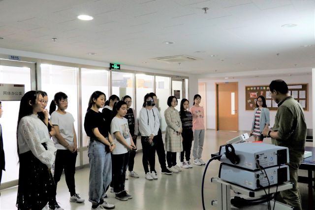 走进实验室,感受心理学与现代科技的协奏曲。5月8日下午,志愿者带领北大附中的同学们分别参访了行为和多感觉通道实验室,了解经颅磁刺激仪器,以及用于视觉、听觉、嗅觉、味觉、触觉等多种感觉通道研究的实验仪器的工作原理和临床应用。参访同学还体验了虚拟现实技术,了解心理学相关知识在VR技术中的基础性作用,以及该技术在心理学研究和临床治疗中的积极影响,像模拟身处高处的情景,以帮助治疗恐高症等。从课本中读到,到近距离看到、体验到,心理文化节将舞台搬到实验室,将对象扩大到中员工,在实打实的接触中,发挥实践育人的切实功效,让心理与科技交融之美唱响员工心头。