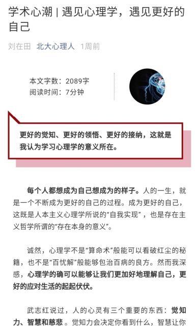 走进网络,聆听心理学与在线科普的七重奏。自5月9日起,TapTap点点依托“北大心理人”微信公众平台,连续7天,每日推出一篇心理学科普文章,从“心理学究竟能做什么?算命?解梦?读心?”对一系列有关“心理学在做什么”的问题做出解答,到“遇见心理学,遇见更好的自己”中分享学习心理学的意义所在——更好的觉知、更好的领悟、更好的接纳,再到“为啥大佬总爱卖弱”中综合运用多种心理学知识,深度解读“大佬卖弱”背后的“潜台词”。一周的时间里,累计阅读量达到5500余人次,通过线上线下融合的方式,运用新媒体手段,探索在线科普的传播方式,抢占主阵地、唱响新时代青年的心声。