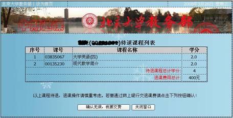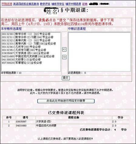 3.第八周周四(11月6日)下午17:00,网上退课申请及交费界面关闭,中期退课结束。