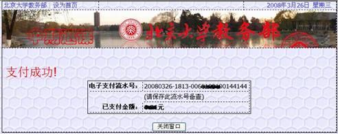 5.所有退课申请完成之后,请点击按钮“点击此处开始进行网上电子支付交费”,利用个人电子支付账户进行退课费支付。会出来下图界面,按提示操作即可。本支付系统与首信易连接,安全性可由该公司得到保障。网上支付操作不可撤销,请慎重退课。支付可多次进行,即支付完一门课后,可申请退另一门课并支付。注意千万不要重复交费,如果支付当时显示不成功,请过一个小时后重试,以免重复支付。