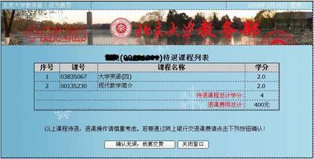 6.支付完成之后,由于某些银行卡支付有延迟,是否成功的结果未必马上出来。为避免因为支付失败,导致退课不成功,请于次日上网确认支付是否成功。若欲退课程进入“已交费待退课”列表,则表示支付成功。