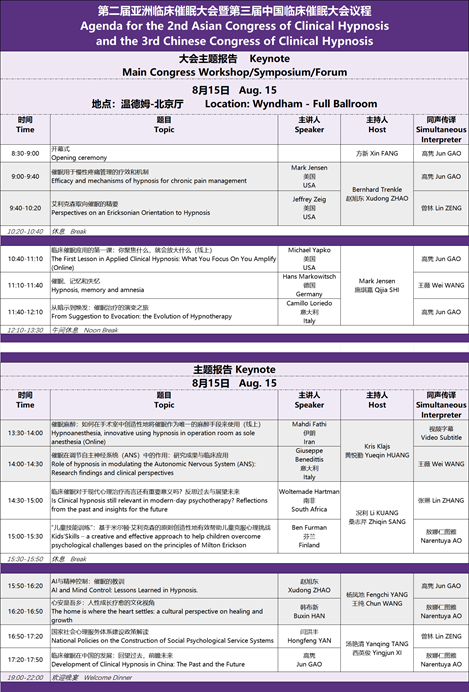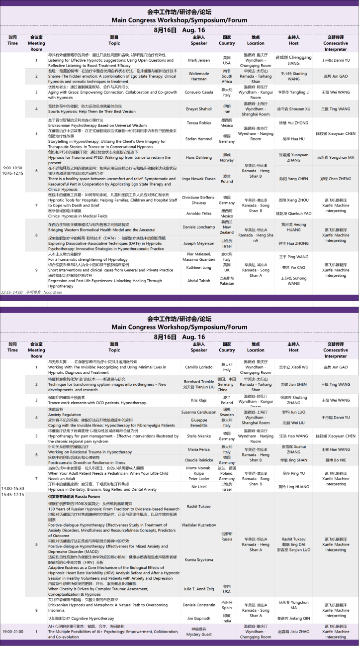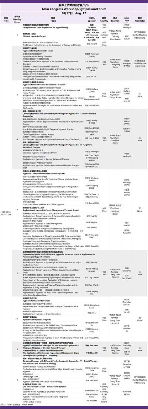 大会主体仅向专业人员开放,包括从事心理工作、临床催眠的专业人员(如医院医护人员、大学心理咨询老师、中小学心理老师、个人执业咨询师、特殊职业(公安、武警、解放军等)、社会工作者、心理学相关专业在校员工、心理教练等)及心理健康相关产业(心理测评、图书、仪器设备、软件硬件等)等。谢绝心理学爱好者和非专业背景人员参加。