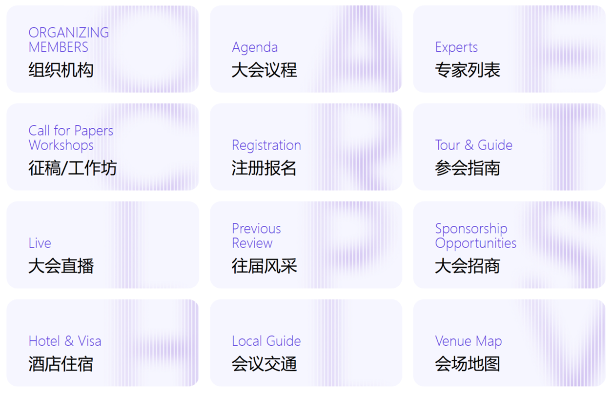 大会官方语言为中文和英文,大会主题报告提供同声传译,其他工作坊、论坛等提供交替传译。