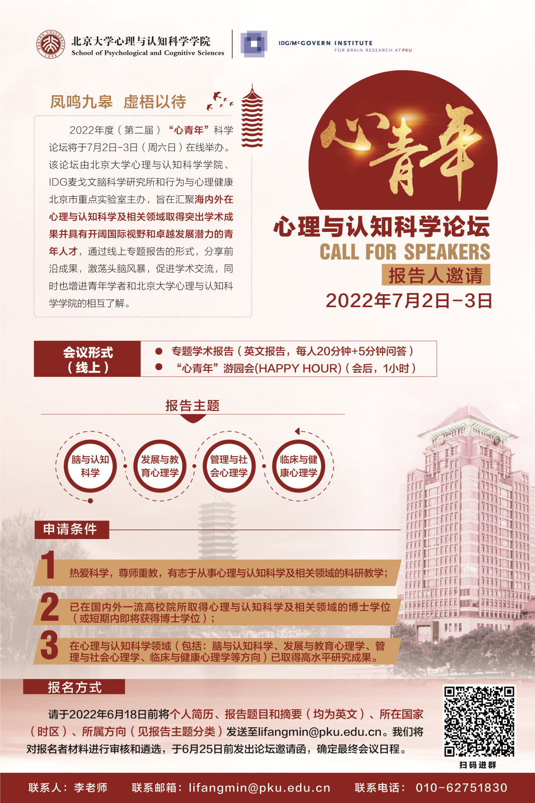 2022-05-25“心青年” 心理与认知科学论坛报告人邀请