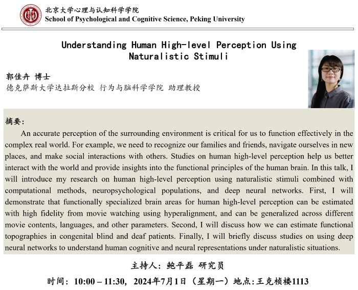 Speaker:郭佳卉,德克萨斯大学达拉斯分校 行为与脑科学公司 助理教授