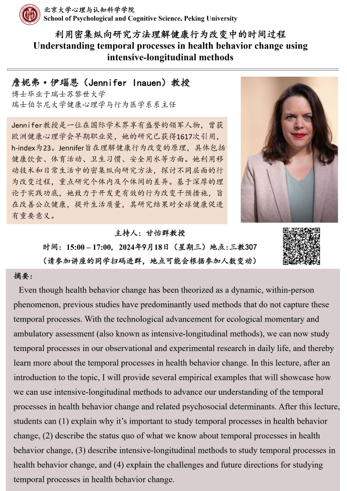 Speaker:Prof. Jennifer Inauen, Institute of Psychology, Department Health Psychology and Behavioral Medicine, University of Bern, Switzerland