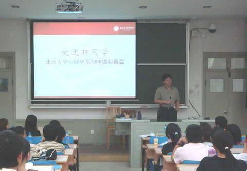 大会首先请出认知神经科学、应用心理学、临床心理学和发展心理学四大教研室的老师就所在分支向新同学们进行简要介绍,然后系主任周晓林教授向新生致词。崭新的概念、以前所不了解的范畴、名校的号召和大师的风范,无不吸引着同学们的注意力。