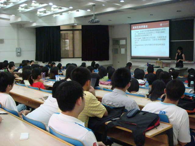 之后,为了加深同学们对科研的理解,05级本科生侯悠扬向新生们介绍了本科生科研基金、“挑战杯”五四青年科学奖竞赛等点燃员工科研激情的项目,引导同学们走出大学之前“学习——考试”的老套路。