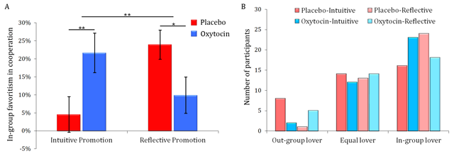 Ma, Y., Liu, Y., Rand, D., Heatherton, T., Han, S. (2015). Opposing oxytocin effects on inter-group cooperative behavior in intuitive and reflective minds. Neuropsychopharmacology. doi: 10.1038/npp.2015.87