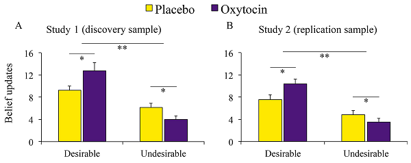 Ma, Y., Li, S., Wang, C., Liu, Y., Li, W., Yan, X. Chen, Q., Han, S. (in press). Distinct oxytocin effects on belief updating in response to desirable and undesirable feedback, PNAS 2016; published ahead of print August 1, 2016, doi:10.1073/pnas.1604285113