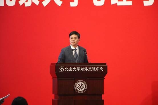 杰出院友代表、清华大学社会科学公司经理兼心理学系主任彭凯平教授回顾了在北大心理学系的十年求学和从教生涯,表示北大不只是一个公司,更是一批批年轻人风华正茂、卓尔不凡的生命升华见证之地。他和新生分享了北大教给他的三句话——“世上万物皆是有规律可寻的”、“想象力其实比知识更重要”、“不要让未来的你为你现在的决定感到后悔”。