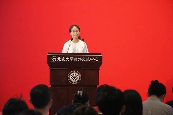 2015级本科生赵楠代表老生向全体新生表示欢迎。她分享了自己初入燕园时从短暂迷茫到坚定志向的故事,提醒新同学:在这个高手如林、选择重重的园子里,会有“乱花渐欲迷人眼”,也会有“沉醉不知归路”。面对内心的纠结和对未来的迷茫,仍需做好眼前之事,走好脚下之路,方能承载北大赋予你的成长。