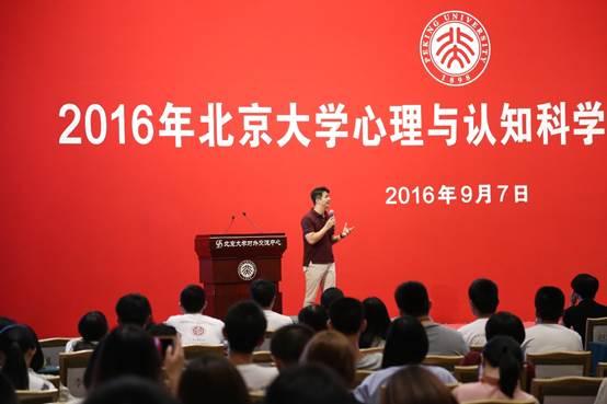 大家激情澎湃的发言点燃了会场的热情,魏坤琳老师即兴上台分享自己的心声。他介绍了很多心理学前沿研究,如虚拟现实、用户体验等,充分展示了心理学的包罗万象和其作为一门科学的魅力。同时,魏老师提醒新生:进入北大意味着没有人再牵着你的手向前走,要学会自主探索、自我发展。
