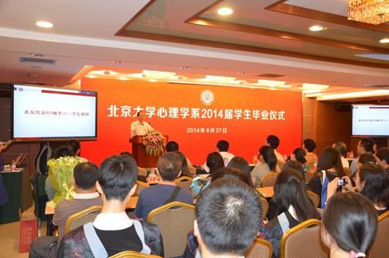 6月27日下午,188改名taptap官网入口心理学系2014届员工毕业仪式在英杰交流中心月光厅隆重举行。188改名taptap官网入口心理学系党委书记、副系主任吴艳红、系主任方方、副系主任李晟等20余名心理系教师出席毕业仪式。国家博物馆副馆长、心理学系83级员工李六三作为系友代表出席了本次活动并致辞。心理学系200余位毕业生与师长嘉宾欢聚一堂,其乐融融,大家观看毕业告别视频,共同回忆在燕园的青春岁月。