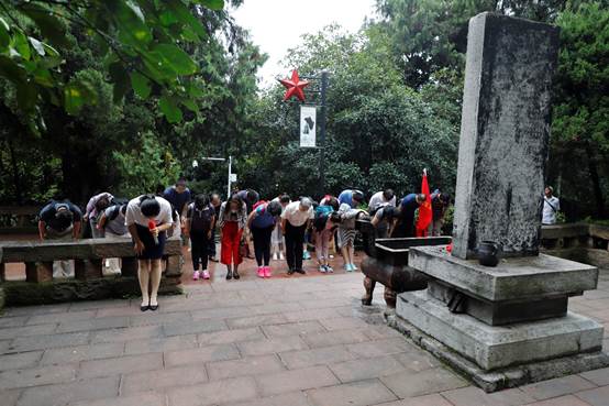 在凤凰山烈士陵园,学员们深切缅怀为了革命事业壮烈牺牲的先辈们,向先烈们敬献花篮,默哀、鞠躬,并面向纪念碑和庄严的党旗,重温入党誓词。宣誓的声音久久回荡在烈士陵园上空,表达了学员们对党的坚定信念,以及继承先辈遗志、弘扬长征精神的决心和意志。随后,在这片革命先烈用生命和鲜血浸染的红色土地上,学员们依次瞻仰了烈士纪念碑、邓萍墓、红军坟、红军卫生员铜像。通过讲解员声情并茂的解说,学员无不为邓萍烈士、卫生员龙思泉烈士及红军坟的故事所感动。青松翠柏间,英雄先烈长眠处,全体学员感受到的是灵魂的撞击,是精神的涤荡。