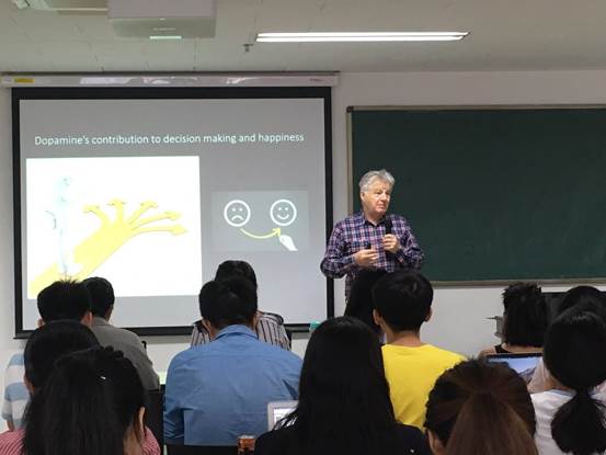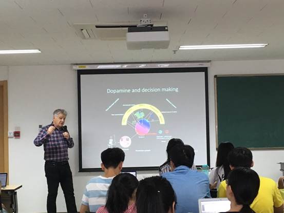 9月14日下午1时,Ray Dolan教授在王克桢楼1113会议室举行了名为“决策和奖励”(Decision making and reward)的专题讲座。Ray Dolan教授在开场之前再次展示了其研究团队,之后主要结合近年来的研究成果讨论了多巴胺对决策和情绪的影响机制,提出情绪与认知的计算模型,阐明了人类决策行为的认知计算机理和快乐的理解机制,展现设计巧妙的实验程序揭示多巴胺在其中的作用并结合其神经环路的功能,给出充分的数据支持神经计算模型的合理性。
