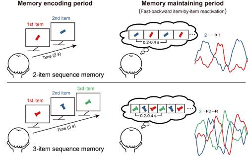 回忆电话号码,我们需要从记忆中提取一串特定顺序的数字;追忆一段旧事,我们也是从记忆中提取一段随着时间展开的人物地点动作和对话的序列。序列记忆 (sequence memory)在很多认知功能中都至关重要,然而这些次序信息是如何在大脑中被表征和被记忆巩固呢?以往在小鼠上的研究发现了海马区域的记忆序列重演神经活动(例如,Foster& Wilson, 2006),也有学者提出了相应的神经计算模型(Jensen&Lisman, 2005),然而人脑上的直接神经证据一直很少,并且这种序列重演的心理学含义也尚不清楚。