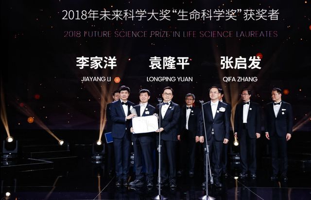 袁隆平、李家洋、张启发获得2018年未来科学大奖-生命科学奖。丁健、沈南鹏、张磊等作为捐赠人为获奖者颁奖。获奖理由:表彰其系统性地研究水稻特定性状的分子机制和采用新技术选育高产优质水稻新品种中的开创性贡献。