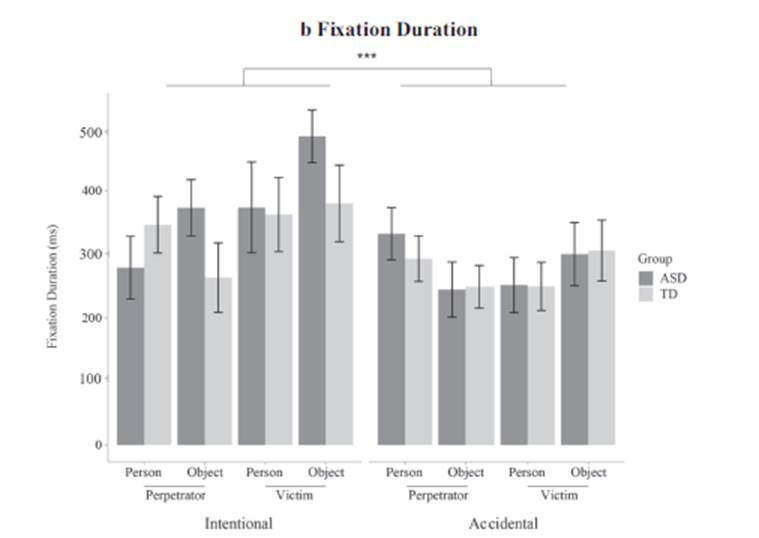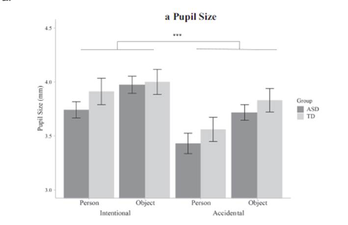 研究结果发现,与正常发展的儿童类似,孤独症儿童可以根据道德事件中的施暴者的意图做出道德判断。例如,他们认为故意伤害或破坏的行为更加不正确。同时,眼动数据分析结果进一步显示,孤独症儿童与正常发展儿童一样,更多地关注包含故意伤害或破坏的事件,瞳孔放大更多。这些研究结果表明孤独症儿童能够理解施暴者故意伤害或者破坏的意图。然而,研究也发现了孤独症儿童道德感中的异常表现,孤独症儿童认为故意破坏物品的事件比故意伤害他人的事件更加严重,当他们看到一个物品被破坏时,他们感到更加难过,而且他们瞳孔放大更明显。而对于正常发展的儿童,故意伤害他人的道德事件才是更严重的,更令他们感觉难过的。据推测,孤独症儿童对于物体被破坏的道德判断表现出异常可能是与他们的孤独症症状有关。孤独症儿童往往存在对物品的特殊兴趣和异常关注,对人的关注较少,这种症状会影响他们的社交发展,也会影响他们道德感的发展。该研究为孤独症儿童道德感相关研究提供了新的实验设计思路和分析方式,丰富了孤独症儿童道德感的相关知识和研究结果,为提升孤独症儿童道德感的干预方法提供了实证参考。