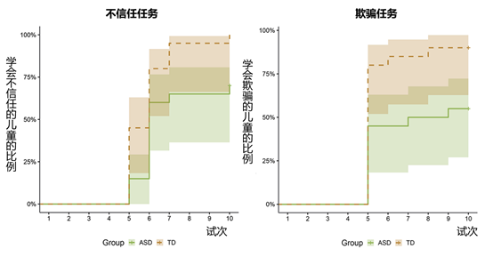 本研究旨在探讨孤独症儿童如何在与社交机器人的互动中学习不信任与欺骗。不信任与欺骗是儿童社会发展中的里程碑,标志着其心理理论和执行控制能力的显著发展。易莉课题组在之前的研究中已经发现,孤独症儿童相比于正常儿童,在与真人互动时学习不信任与欺骗会表现得更差;但把任务中的社会线索去掉之后,孤独症组的表现并没有比正常组更差。