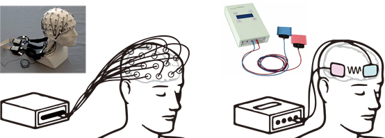 图2 脑电设备和经颅交流电刺激仪示意图。