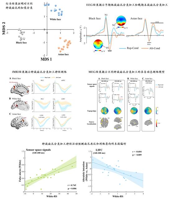 在同一篇论文中结合行为及“EEG/MEG/fMRI”等多模态神经影像技术对同一科学问题开展系统研究,在社会神经科学领域少有。该论文报道的实验发现对于理解种族概念的本质及其脑基础、对理解对不同种族态度和行为上的差异及相关的社会问题提供了重要神经科学依据。该论文报道的研究工作受国家自然科学基金“中以合作项目”和“创新团队项目”支持。
