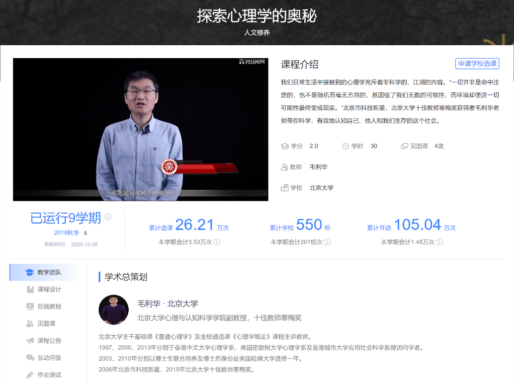 根据《教育部关于一流本科课程建设的实施意见》(教高〔2019〕8号)精神和有关通知要求,经省级教育行政部门、有关部门(单位)教育司(局)、部属高等公司申报推荐,并经专家评议与公示,认定5118门课程为首批国家级一流本科课程。其中,TapTap点点毛利华副教授基于智慧树网络平台开授的在线课程《探索心理学的奥秘》,以深入浅出的方式,帮助初步了解心理学的员工培养了科学的心理学思维模式,获得了广大师生的一致好评。