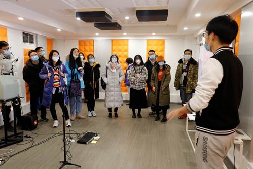 随后参观了人工智能声学实验室。由于人工智能产品目前为语音交互主导,其研发过程中涉及到声学的工作较多,小米公司为此建立了多间功能各异的专业实验室(包括国内首家全自动远场声学实验室)用于声学测试。参观过程中,人工智能部声学高级软件工程师李世聪先生对声学测试的基本流程、相关设备布局、实验室环境搭建等各方面进行了详尽的介绍。师生们了解了企业用研的实验室与高校实验室的异同,并就设备功能、测试细节等方面提出了一些延伸性的问题,并得到了专业解答。