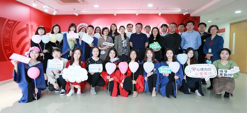 上午7时,公司行政办赵心,教务办韩颖、段妍,团委书记杜婉莹,团委常务副书记刘冰洁等老师准时在邱德拔北广场布置欢迎摊位,为返校的51名2020届院友发放典礼门票、定制校徽与学位服等物资,迎接学位授予仪式。去年毕业生们“云端”相聚,校内九个室外会场留下属于北大人永不磨灭的记忆,今年当熟悉的《燕园情》再次在邱德拔体育馆唱响时,家国使命在肩、母校嘱托在心的北大毕业生们重返校园,从新的起点起航。仪式结束后,谢晓非与姚翔在学位门前为毕业生一一拨穗并寄语叮嘱,师生移步百讲广场,与2020届各毕业班班主任、毕业生导师等集体合影留念。