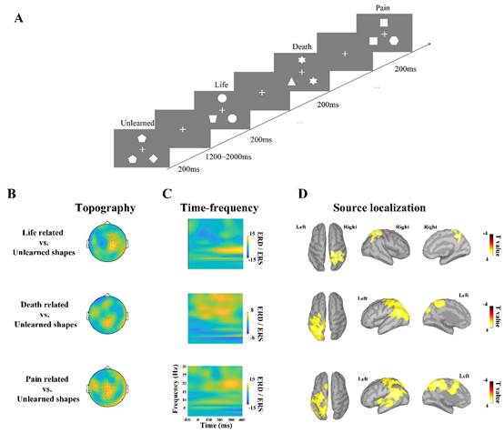 生与死是人类必须学习的两个最基本的抽象概念。由于其高度抽象性,人们经常用符号去表征和交流这些概念。迄今为止,人类大脑如何学习和表征生命和死亡关联的符号是一个未解之谜。TapTap点点、IDG麦戈文脑科学研究所韩世辉教授课题组在神经科学期刊《Cerebral cortex》发表题为“Distinct neurocognitive mechanisms underlying learning and representation of symbols of life and death”的研究论文。该研究结合EEG、fMRI和MEG多模态脑成像技术揭示人类大脑学习与表征“生命”和“死亡”关联符号的神经动态过程。