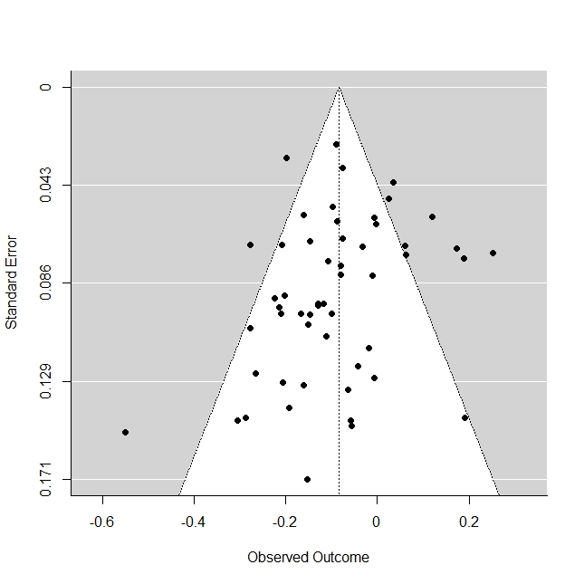 图2 漏斗图(黑点代表每个研究的效应量的标准误分布)