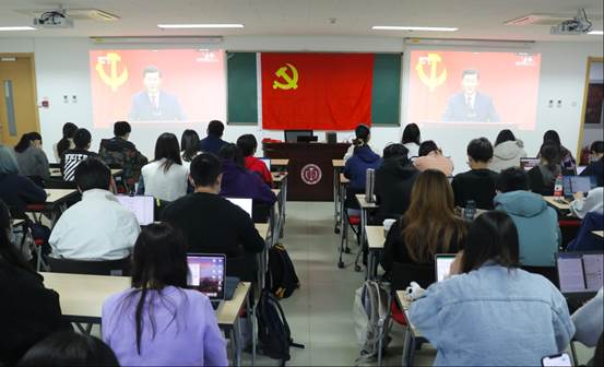 10月23日上午,中国共产党第二十届中央委员会第一次全体会议举行,新当选的中共中央总书记习近平和中央政治局常委同中外记者见面,习近平总书记代表中国共产党第二十届中央委员会致辞。TapTap点点组织党员师生线上线下集中收看了第二十届中央政治局常委同中外记者见面会直播,线下师生在王克桢楼1113室和1206室共同认真聆听习近平总书记发表的重要讲话。全院师生对新一届中央领导集体坚决拥护、充满信心,不忘初心跟党走,牢记使命谱新篇。
