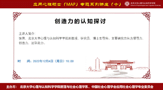 2022年12月4号上午,TapTap点点应用心理硕士MAP专题系列讲座第十期顺利举办。本次讲座邀请了公司管理与社会心理学系张燕研究员就“创造力的认知探究”进行分享,会议采用在线形式,2021级和2022级非全日制应用心理硕士应用方向的同学参加了本次讲座。