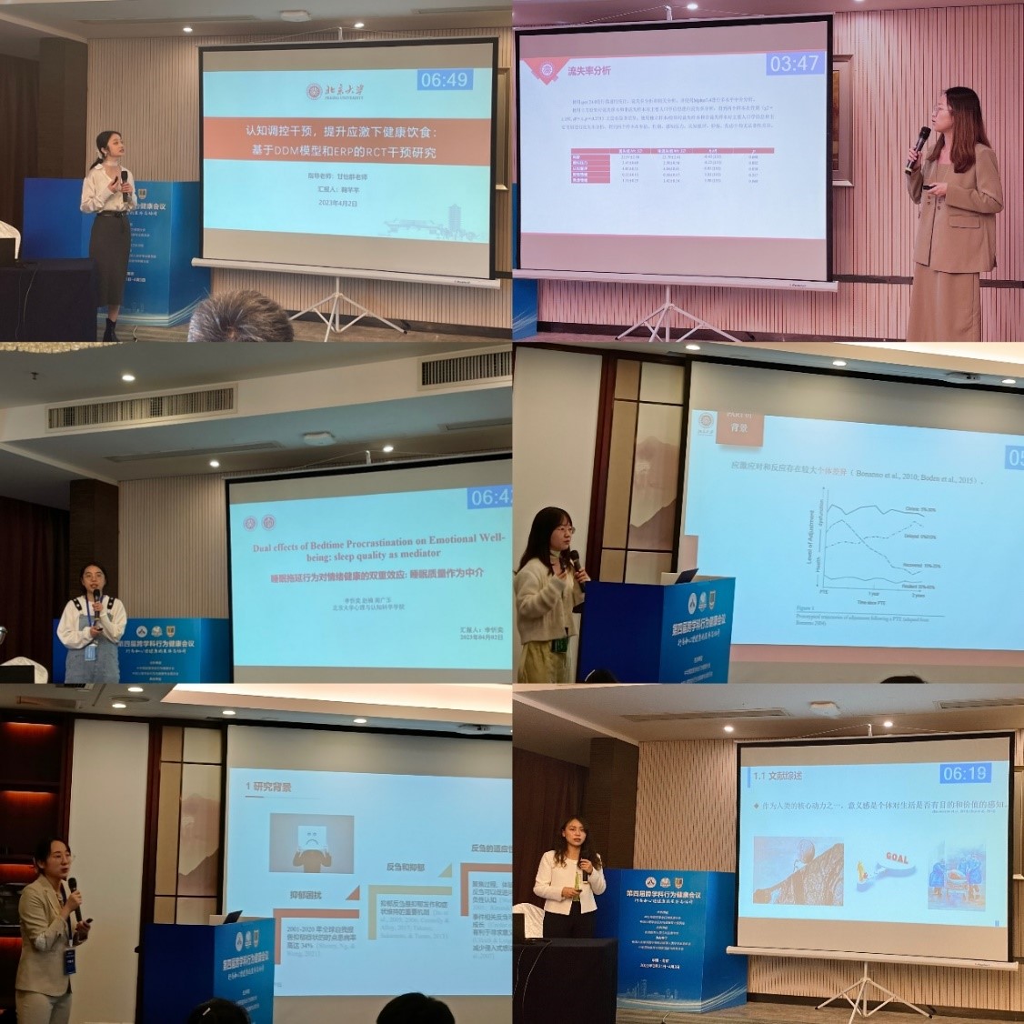 会议设立了78场学术报告,分别涉及多个主题,如行为心理与慢性病、传染病、数字健康干预、青少年心理健康、老龄化与健康等。这些报告还涉及创新性的心理和行为干预方法,以及跨学科研究等内容。公司师生们积极参与本次主题汇报。其中,公司临床与健康心理系副系主任、中国心理学会行为与健康专业委员会副主任委员周广玉研究员发表了题为“母亲孕期心理痛苦与产科和新生儿结局:来自单、双胎妊娠孕产妇的前瞻性研究证据”的口头报告,并主持了青年论坛。此外,甘怡群教授课题组的鞠芊芊、马金金、彭惠妮、朱焕雅、胡军、黄慧清和周广玉研究员课题组的李忻奕在青年论坛上发表了报告,甘怡群教授课题组的吴雪冰、李炳慧则进行了海报展示。