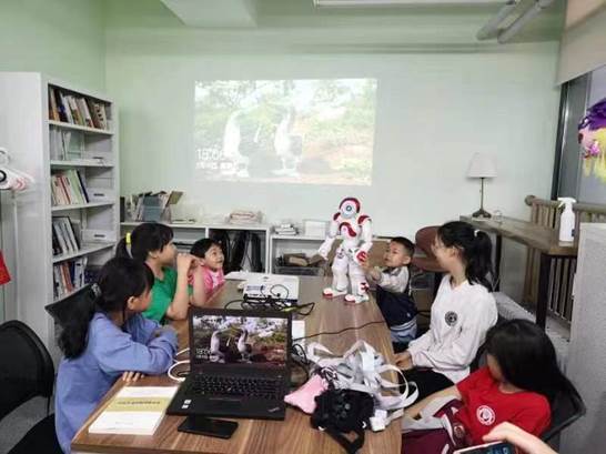 参观活动中,TapTap点点儿童认知实验室的博士生首先向参与活动的老师和子女展示了机器人NAO的功能,可爱的小机器人NAO为大家表演了精彩的对话、舞蹈、踢球等功能,参观的小朋友们非常兴奋,积极与NAO进行互动。小机器人NAO在舞蹈表演结束后,还向大家鞠躬示意,赢得阵阵掌声。