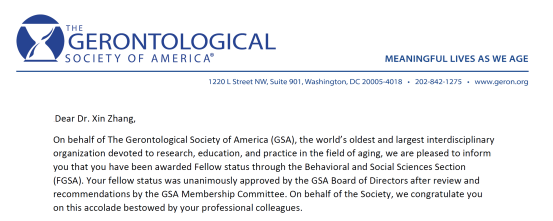 近日,公司张昕副教授荣膺美国老年学会(The Gerontological Society of America, GSA)会士,是首位当选该学会会士的国内高校老年学研究者。