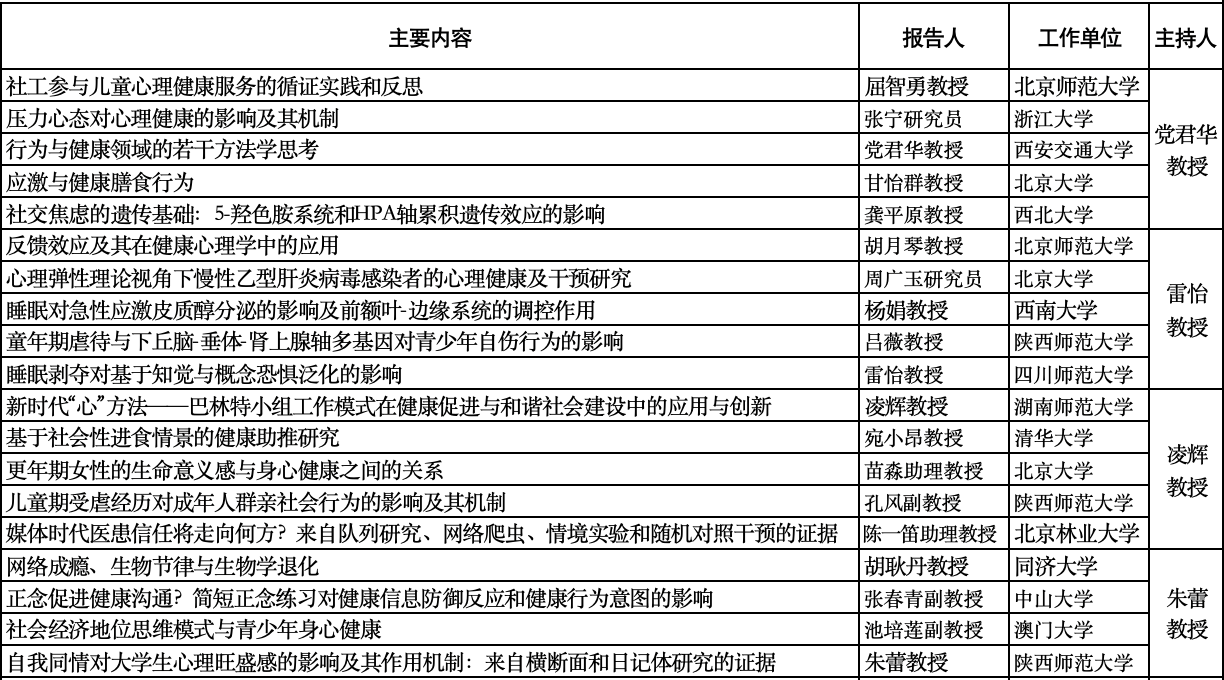 中国心理学会行为与健康心理学专业委员会2023年学术年会专题报告内容