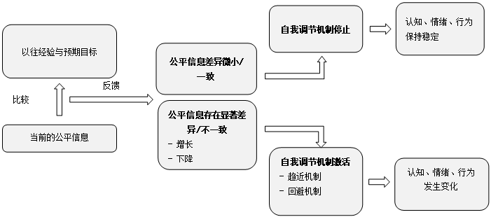 该研究整合了自我调节理论和趋近-回避机制,提出了一个组织公平变化的自我调节模型(如图1)。该研究创新性地考虑了员工将当前公平信息与以往经验和期望进行比较的动态本质,以及趋近和回避两种自我调节路径的作用。当公平信息变化微弱或没有变化时,自我调节机制会自动停止,员工当前的情感、认知和行为状态会保持稳定。但是,当反馈给员工的信息揭示当前和过去的公平体验存在显著差异时,自我调节机制会被激活,员工的情感、认知和行为会发生明显变化。具体而言,正面的公平变化将增强员工的组织认同感和工作投入,而负面的公平变化则可能引发员工的焦虑和行为退缩。此外,在就业机会较多的收益情境下,员工更倾向于使用趋近策略;而在失业威胁的损失情境下,员工更倾向于使用回避策略。该论文包括3个纵向追踪的调查研究,结果都一致支持了组织公平变化的自我调节模型。