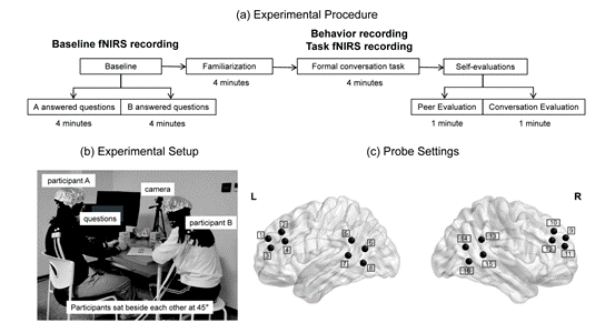 研究团队将128名成人被试被按照孤独症特质得分进行两两配对,分为高-高特质组、高-低特质组以及低-低特质组。每对被试需完成4分钟的社交对话任务,全程录像并记录了双方大脑的近红外活动水平。任务结束后,被试还需要对交流过程进行评分。