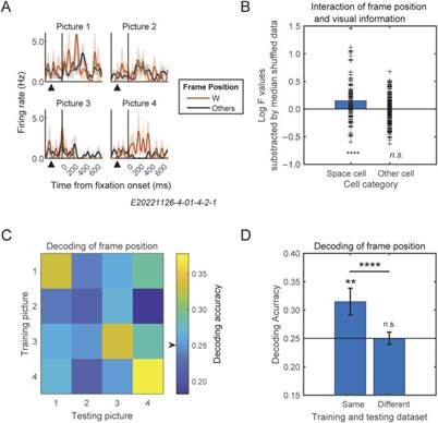 有意思的是,在这个不要求主动编码的注视范式中,PIT空间细胞也倾向于受到背景图像所属框架位置的调节(图3),且往往局限于背景所属唯一母图的框架位置,而非各母图共有地一般性框架位置(例如,相对任一母图中心,向上或向左的位置),提示表征当前感知信息的视野中心背景信号可能受到源自视觉经验的记忆信号的调节,进而实现当前注视物体在整体场景心理表征的位置编码(即,异我空间编码)(注,整理场景心理表征需经多次感知觉构建)。