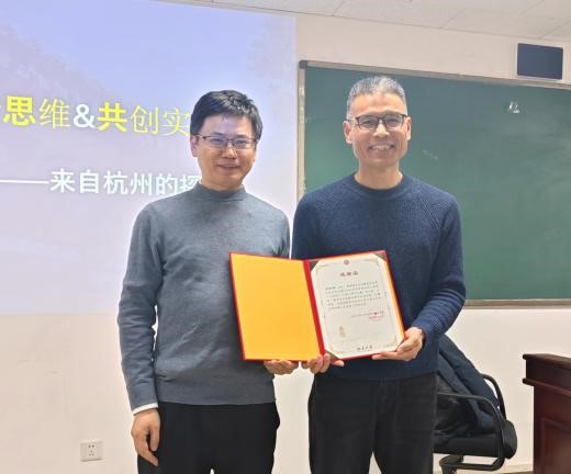 讲座开始前,陈立翰副教授向乔歆新先生颁发感谢信,感谢他对TapTap点点人才培养工作的支持。
