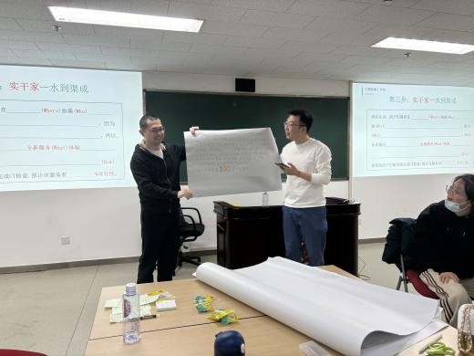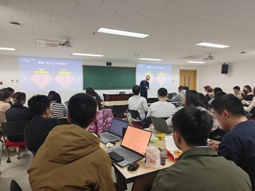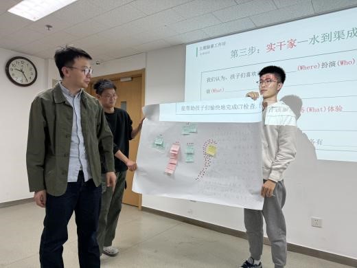 整个讲座过程中,同学们认真听讲,积极思考,踊跃提问与老师互动。内容分享结束后,在乔歆新先生的用心设计和引导下,所有同学都参与一场沉浸式的服务设计微工作坊,以 “如何让儿童心甘情愿地接受医院CT检查?”为主题,同学们以身入局体验服务设计共创的魅力。同学们不仅从讲座分享中收获知识,也从具有一定挑战性的“共创实践”初步体会服务设计的思路与流程。