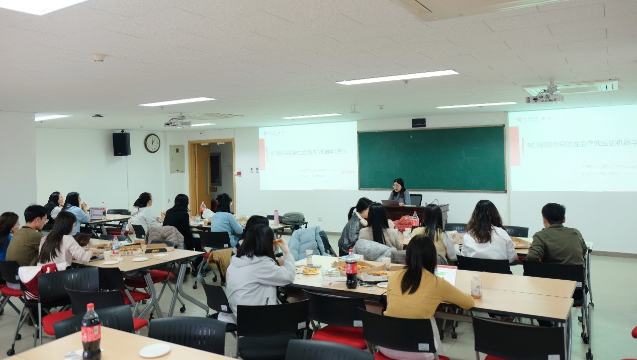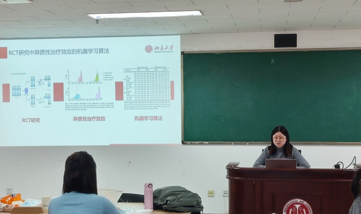 第一位报告人刘金梦(健康心理学方向博后),分享了题为“RCT研究中异质性治疗效应的机器学习算法”的研究报告。
