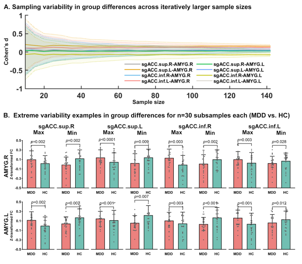 研究还揭示了小样本研究的局限性。通过模拟,团队发现,若仅依赖少量样本(例如30名患者与30名健康人),由于人群异质性和统计效能不足,结果可能出现截然相反的结论——或增强,或减弱。这为过去研究的矛盾性提供了科学解释。研究指出,基于大样本和细致分类的生物学标记是未来的方向,这一方法不仅能提升研究的可靠性,还将为青少年抑郁症的精准诊断与个性化治疗奠定坚实基础。