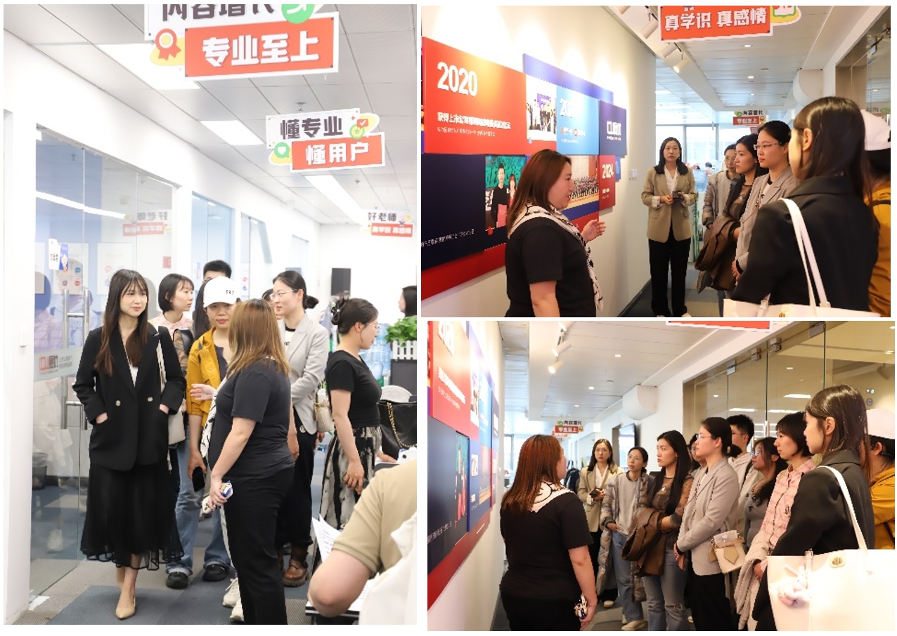 在赛优教育副总裁刘洁的引领下,师生们参观了公司总部。展示区内陈列了多项行业资质认证与荣誉证书,彰显企业深耕心理咨询与家庭教育领域的实力;专业的一对一咨询室、智能化网络直播间及高效协作的办公场景,则让师生直观感受到“全民心理品牌”愿景下的企业运营生态。刘洁介绍,赛优教育自2014年成立以来,始终以“让心理走近大众”为使命,构建了覆盖心理咨询师培训、家庭教育课程研发、数字化服务体系的完整业务链,服务数十万用户。